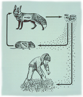 Fuchsbandwurm:Gefahr für Leib und Leber Der Eingriff in ökologische Regelkreise zieht Konsequenzen nach sich, die für Mensch und Tier bisweilen äußerst unangenehme Folgen haben können. Krankheiten dienten in der Medizingeschichte immer wieder als Regulativ, um den Fortbestand entsprechender Tierarten zu kontrollieren. Beispielhaft sei hier nur die Myxomatose genannt, eine Augenerkrankung, die bei Kaninchen zur Erblindung führt. Vertreter dieser Nager entwickelten sich in einigen Ländern zu einer derartigen Plage, daß Farmer um ihre Ernte fürchteten. Doch die natürliche Ordnung stellte sich gewissermaßen von selbst wieder her, da das Augenleiden die Populationen drastisch verminderte. Ähnlich verhält es sich mit der Tollwut, die vor allem Füchse betrifft. Doch was tun unsere kommunalen Behörden? Sie versuchen mittels großflächiger Tollwutimpfungen in diesen Regelkreis einzugreifen. Auf diese Weise wird ein natürliches Korrektiv ausgeschaltet. Das Resultat ist eine ungezügelte, massenhafte Vermehrung der Fuchsbestände, deren Organismus häufig von Parasitenerkrankungen befallen ist.